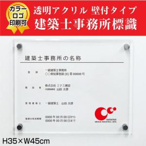 建築士事務所標識 透明アクリル 業者票 事務所 標識 一級建築士 二級建築士 H35×W45cm archi-acryl02