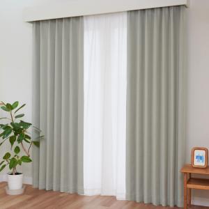カーテン研究所≪二級遮光リネン風ナチュラル厚地 ミストグリーン≫ 幅100cmx丈205cm 2枚組 2級遮光 形状記憶 遮熱 保温 洗える ナチュ