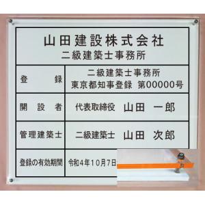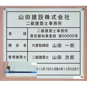 二級建築士事務所看板【アクリルガラス色W式プレート】横500mmx縦400mm