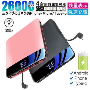 モバイルバッテリー 大容量 26000mAh 防災電源 パワーバンク ケーブル不要 コネクタ付 急速充電 iPhone17充電 4台同時充電 PSE認証【PL保険加入済み製品・安心】