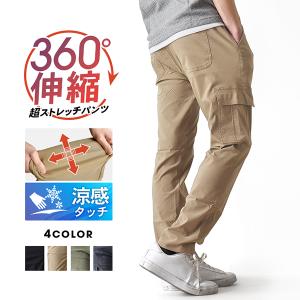 DRYストレッチ カーゴパンツ メンズ 超伸縮 接触冷感 UVカット 無地 スマホポケット 爆買 送料無料 通販Y