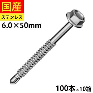ドリルビス ステンレスキャップ ヘックス ビス ネジ セルフドリル 鉄骨用 C型鋼 SCH650 ジャックポイント 6 × 50 大箱 100本 × 10箱