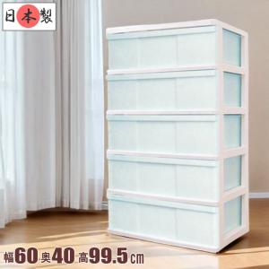 衣装ケース 収納ケース 引き出し プラスチック ワイド チェスト タンス 5段 おしゃれ ホワイト/パームグリーン 幅60 奥行40 高さ99.5cm 組立式 日本製