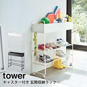 キャスター付き 玄関収納ラック タワー tower 山崎実業 yamazaki 収納ラック 収納棚 玄関 収納 遊具 靴 ガーデニング用品