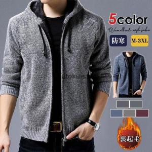 パーカー メンズ ニットカーディガン 裏起毛 ジャケット フード付き 厚手 スウェットパーカー ニットセーター 長袖 防寒 秋冬 トップス