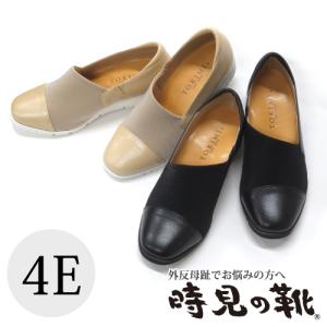 he3633 外反母趾 4E ラム革ストレッチパンプス 時見の靴 tokimi