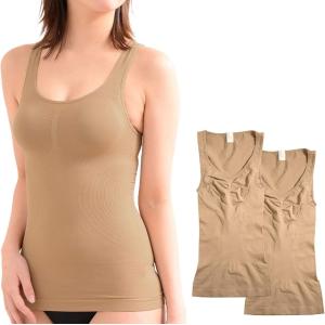 Smile LaLa レディース 姿勢 補正 タンクトップ 着圧 インナー スタイル アップ サポート(ベージュ2枚, Medium)