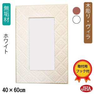 JHAアンティークミラー (デラックス) ウッディ・モダン・木彫りミラー(ヴィラ)W400×H600(ホワイト)壁掛け鏡 ウォールミラー バリ島 洗面 トイレ 店舗