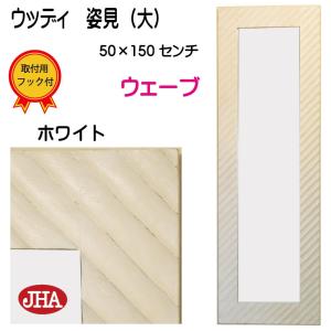 姿見 姿見鏡 JHAアンティークミラー (デラックス) ウッディ・モダン・木彫りミラー(ウェーブ)W500×H1500(ホワイト)天然木 バリ島 玄関 店舗