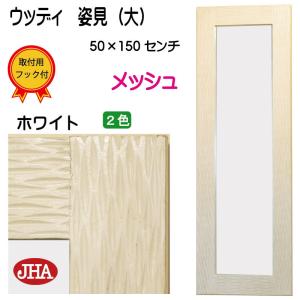 姿見 姿見鏡 JHAアンティークミラー (デラックス) ウッディ・モダン・木彫りミラー(メッシュ)W500×H1500(ホワイト)天然木 バリ島 玄関 店舗