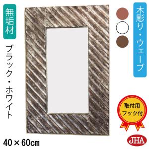 JHAアンティークミラー (デラックス) ウッディ・モダン・木彫りミラー(ウェーブ)W400×H600(ブラック&ホワイト)壁掛け鏡 ウォールミラー バリ島 洗面 トイレ