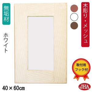 JHAアンティークミラー (デラックス) ウッディ・モダン・木彫りミラー(メッシュ)W400×H600(ホワイト)壁掛け鏡 ウォールミラー バリ島 洗面 トイレ