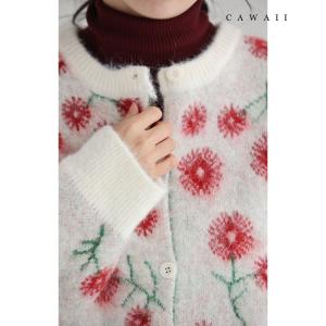Sから2L対応 コスモス咲き誇る花めきカーディガン