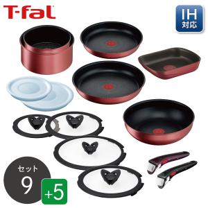 くらし屋オリジナル ティファール 14点セット IHルージュ・アンリミテッド セット9+ウォックパン26cm+エッグロースター+蓋22cm+蓋26cm+専用取っ手