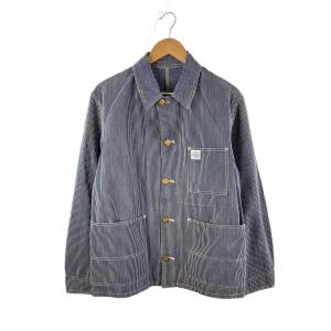 TENDERLOIN((株)ケーセブン)◆ヒッコリー/カバーオール/S/コットン/NVY/ストライプ/右ポケット・左袖シミ有