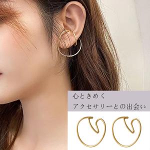 イヤーカフ イヤーカフス イヤカフ イヤリング 大ぶり 2点セット ダブルライン 金属アレルギー対応 18K ニッケルフリー 大人 ジュエリー ゴールド シルバー