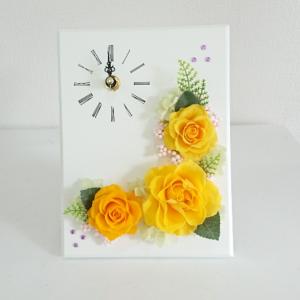 プリザーブドフラワー スクエア型時計M イエロー 花 ギフト 開店祝 誕生日 歓送迎会 送別 卒業 結婚 お祝い 記念日 プレゼント 母の日 父の日 敬老の日