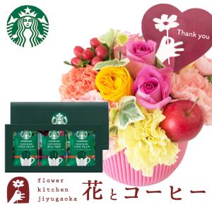 花とコーヒーのセット 選べる2種類のアレンジメントとスターバックスコーヒギフトセット 即日発送 あすつく FKAASW
