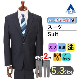 【洋服の青山】スーツ メンズ スリム 春夏 秋冬 ネイビー 紺 ストライプ 洗える ストレッチ 動きやすい ビジネス 営業 出張 仕事 新社会人 入社式 成人式
