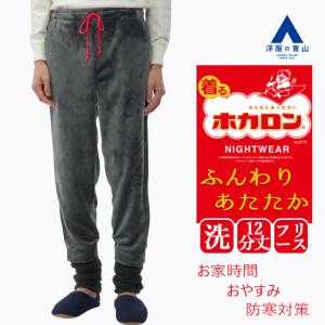 【洋服の青山】着るホカロン フリースパンツ メンズ 秋冬 グレー 灰色 ミンクフリース 12分丈 パンツ セットアップ着用可 ウエストゴム 暖かい ルームウエア