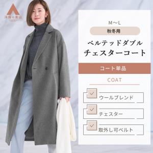 【洋服の青山】ダブルチェスターコート レディース 秋冬用 グレー 無地 総裏 ロング丈 ベルト 取り外し ノーベント 大きいサイズ 暖かい 防寒 ビジネス