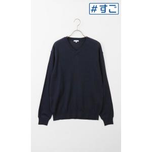 【洋服の青山】毛玉になりにくい ウール100% Vネックセーター メンズ 秋冬 ネイビー 紺 無地 大きいサイズ 洗える 静電気防止 保温 暖かい シワになりにくい