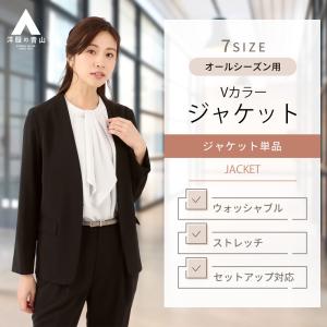 【洋服の青山】 セットアップ可 フロントホック Vカラージャケット 単品 レディース ノーカラー ジャケット 夏 オールシーズン ブラック 黒 無地 冷感