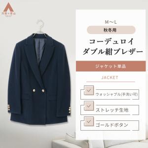 【洋服の青山】紺ブレザー レディース 秋冬 ジャケット ダブル コーデュロイ ネイビー 紺 洗える(手洗い可) 動きやすい ストレッチ 2ボタン 金ボタン 仕事 通勤