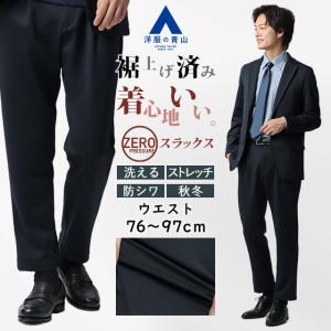 【洋服の青山】裾上げ済み ゼロプレッシャースーツ スラックス スリム メンズ 秋冬 ネイビー 紺 無地 セットアップ 単品 大きいサイズ 洗える ストレッチ 動ける