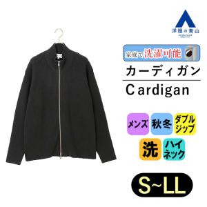 【洋服の青山】メンズカーディガン 秋冬 ブラック フルジップ 上着 アウター 羽織 オフィス ビジネス カジュアル 通勤 黒 ストレッチ シワにならない MORLES