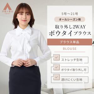 【洋服の青山】ブラウス レディース 2WAY ボウタイブラウス ホワイト 白無地 織柄 ボウタイ リボン レギュラーカラー 長袖 春夏秋冬 形態安定 シワになりにくい