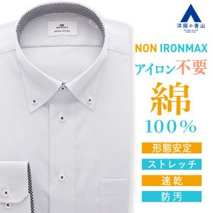 【洋服の青山】アイロン不要 綿100% ワイシャツ メンズ スリム オールシーズン 春夏秋冬 ホワイト 白 ボタンダウン 長袖 NON IRONMAX ノーアイロン