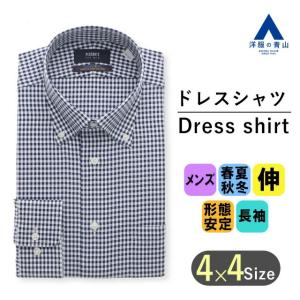 【洋服の青山】形態安定 ワイシャツ メンズ 長袖 春夏 秋冬 ネイビー チェック ボタンダウン スリム ストレッチ 吸汗速乾 透け防止 UVカット ビジネス Yシャツ
