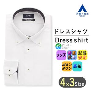 【洋服の青山】ワイシャツ メンズ スリム オールシーズン ホワイト 白 チェック柄 長袖 ボタンダウン 襟裏切替 シワになりにくい 形態安定 ビジネス オフィス