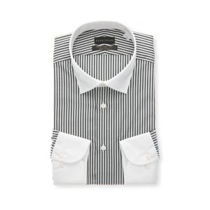 【洋服の青山】形態安定 ワイシャツ メンズ 長袖 春夏 秋冬 グレー ストライプ ワイドカラー スリム ストレッチ 吸汗速乾 ビジネス Yシャツ シンプル