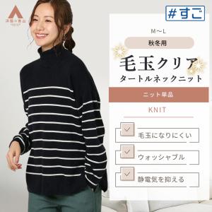 【洋服の青山】秋冬 ネイビー系 タートルネックボーダーニットプルオーバー【毛玉CLEAR】【すごセーター】 ANCHOR WOMAN レディース ビジネス カジュアル