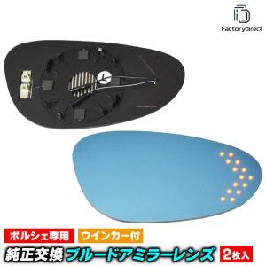 【互換品】lm-po04c Porsche ポルシェ 991 Turbo ターボ (996T型 2001-2005 H13-H17) LEDウインカードアミラーレンズ ブルー ドアミラーガラス ( サイドミラー