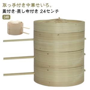 18cm せいろ 3段 蒸器 ハンドル付き 蓋付 セット 中華せいろ 木製 竹製 セイロ 蒸し器 18センチ 片手 取っ手付き 竹 蒸篭 蒸籠 点心