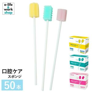 口腔ケアスポンジ 1箱 50本入 スポンジブラシ 介護用品 口内洗浄 ケア用品 歯垢除去 舌汚れ お口ケア 個包装 衛生的 プラ軸