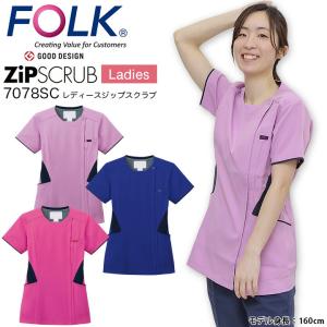 7069SC スクラブ 白衣 かわいい ジップ フォーク メディカル クリニック ナース 病院 医療 看護 介護 レディース