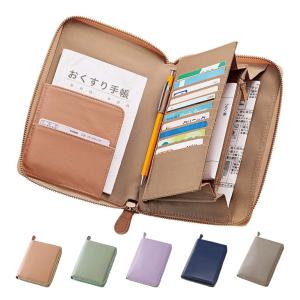多機能ポケット付き ラムレザー お薬手帳ケース - 通院 病院 財布 ポーチ お薬手帳 入れ ラウンドファスナー 診察券入れ 羊革 ラム革 メンズ レディース