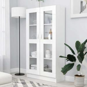 vidaXL ガラスキャビネット ホワイト 82.5x30.5x150cm エンジニアリングウッド家具 棚 本棚・オープンラック 代引不可