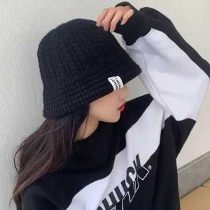 女性用ウールニットバケットハット フィッシャーマンズキャップ 折りたたみ式 暖かく 冬のファッション