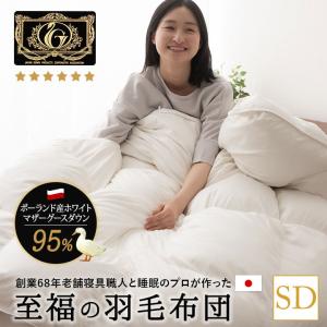 日本製 羽毛布団 セミダブル プレミアムゴールドラベル 非圧縮 収納ケース ハイブリッド ホワイトグースダウン95% 羽毛 掛け布団 あったか 冬 送料無料 爆買
