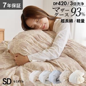 マザーグース 羽毛布団 セミダブル 布団カバー付 マザーホワイトグースダウン93% 1.3kg入り 420dp 羽毛掛け布団 羽毛ふとん