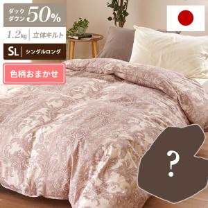 羽毛布団 福袋 シングル 日本製 ダウン50% 1.2kg 立体キルト 冬用 羽毛掛け布団 ふとん 色柄おまかせ