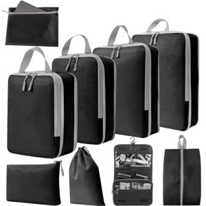 TMVOK トラベルポーチ 9点セット旅行用 出張 アレンジケース 圧縮バッグ 収納バッグ 防水 シューズバッグ トイレタリーバッグ パッキング