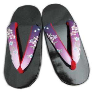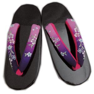 【訳有り 少難あり】 下駄 本桐 女性用 フリー 24cm ラメ黒台 濃紫薄紫ぼかし地撫子刺繍鼻緒 H・L 浴衣 ゆかた