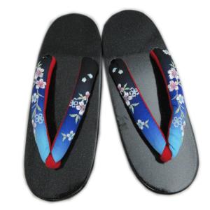 【訳有り 少難あり】 下駄 本桐 女性用 フリー 24cm ラメ黒台 黒青水色ぼかし地撫子刺繍鼻緒 H・L 浴衣 ゆかた