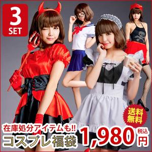 ハロウィン コスプレ 福袋 訳あり 女性 送料無料 返品交換不可 3点セット デビル メイド 制服 バニー セクシー 可愛い 衣装 仮装 ハロウィンコスチューム